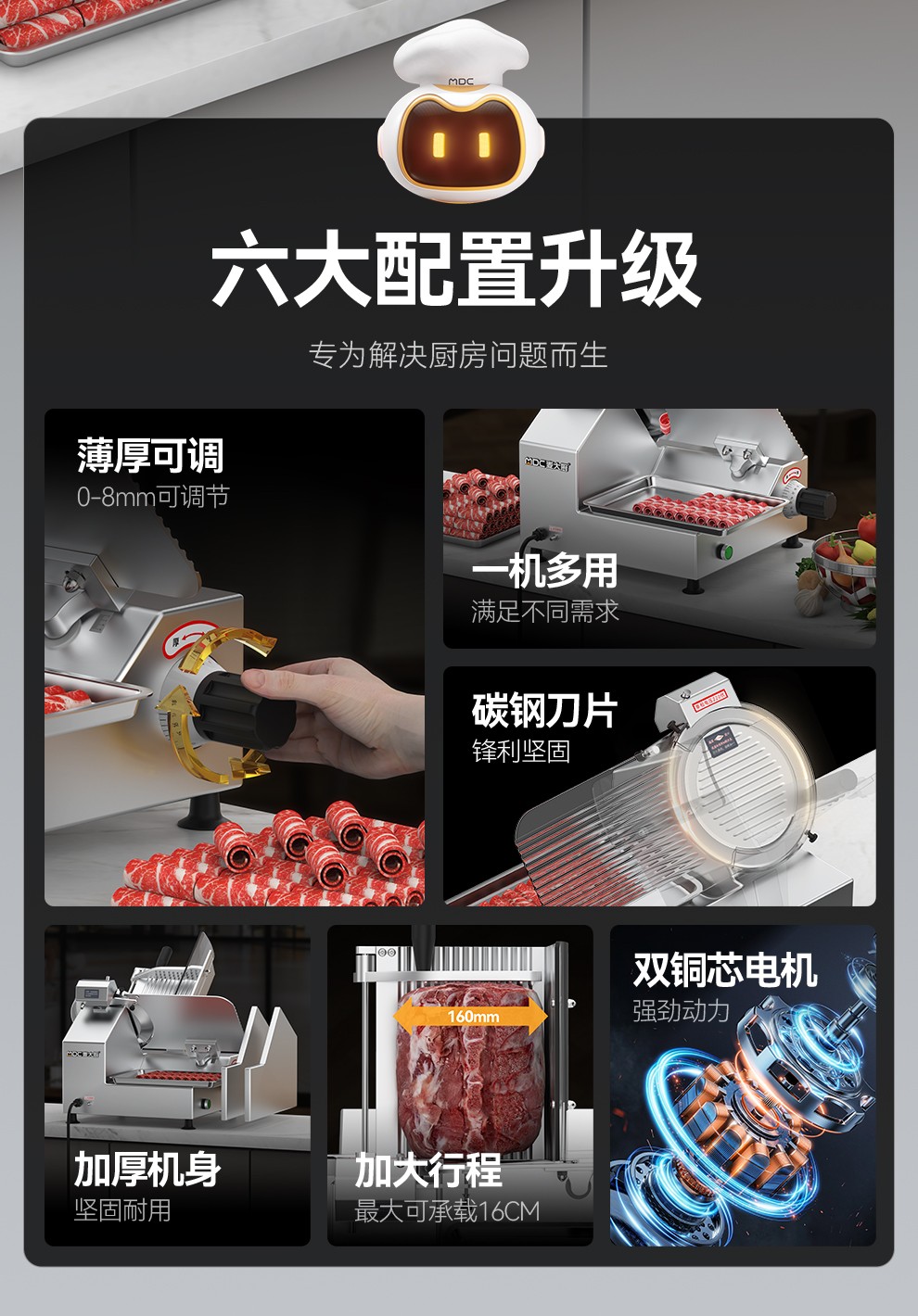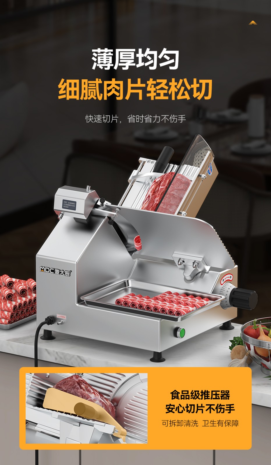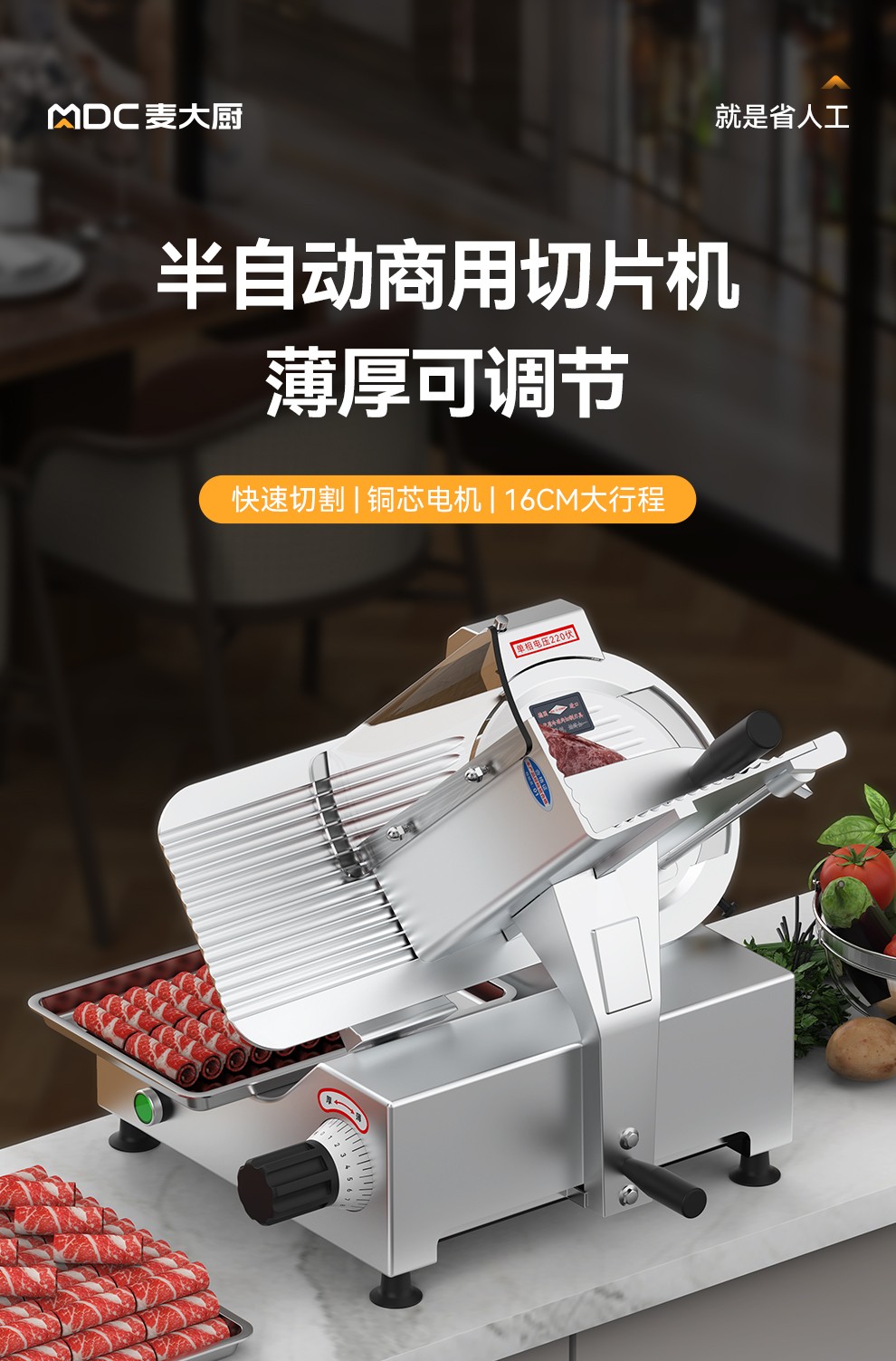 麥大廚商用10寸臺式半自動切片機切牛肉羊肉片專用