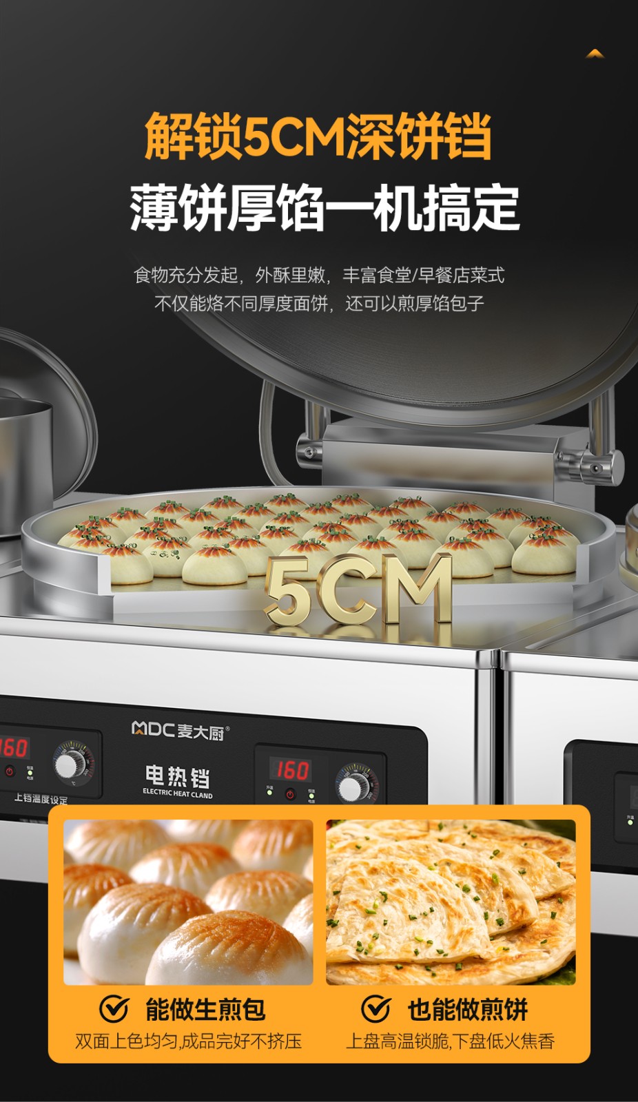 麥大廚380V數顯標準款商用電餅鐺食堂烙餅機(不銹鋼5cm)