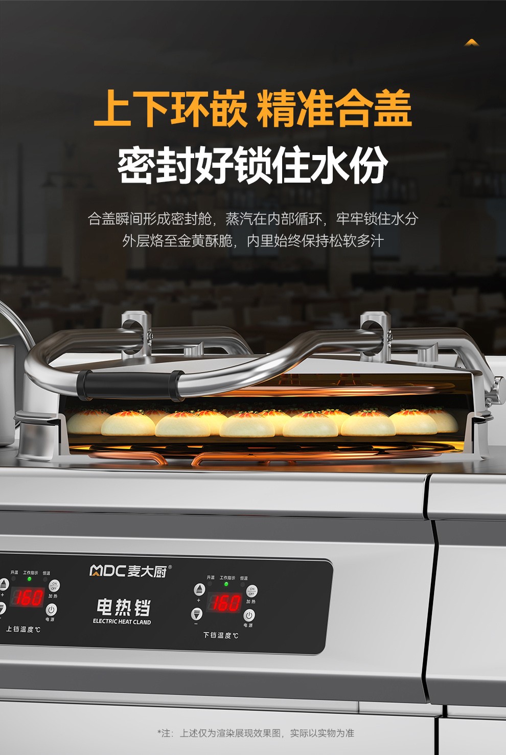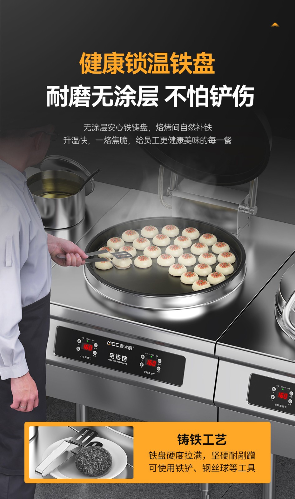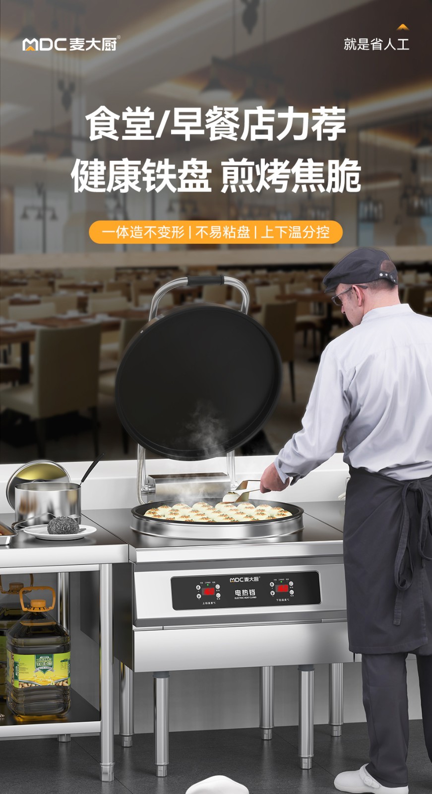 麥大廚220V大型食堂烙餅機鐵鍋6cm數(shù)顯升級款商用電餅鐺