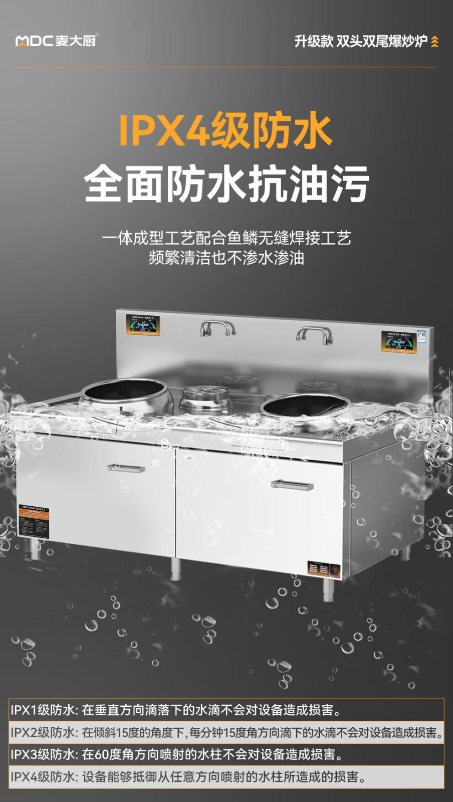 麥大廚升級款雙頭雙尾小炒爐商用8KW