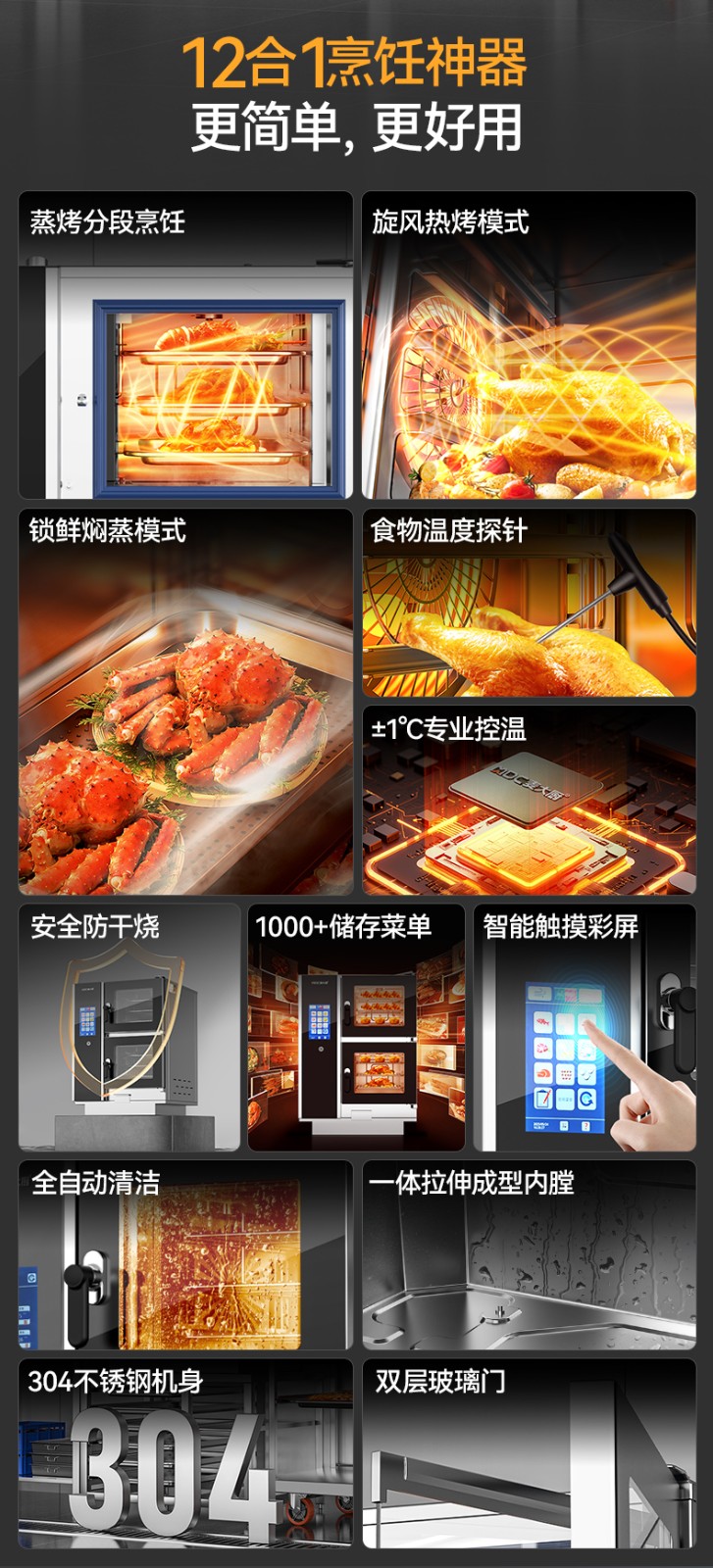 麥大廚ZKA19系列2柜組合觸屏式萬能蒸烤箱8.4kW