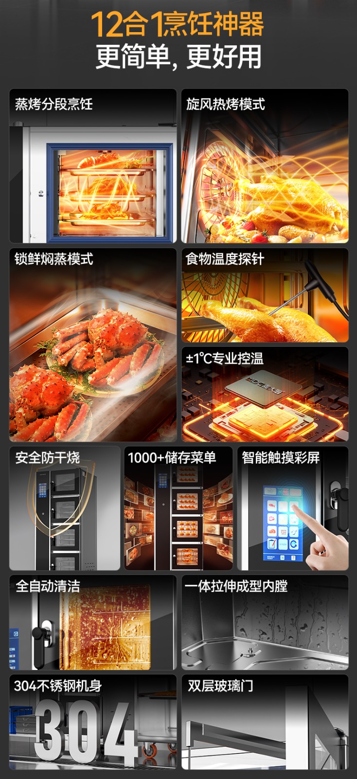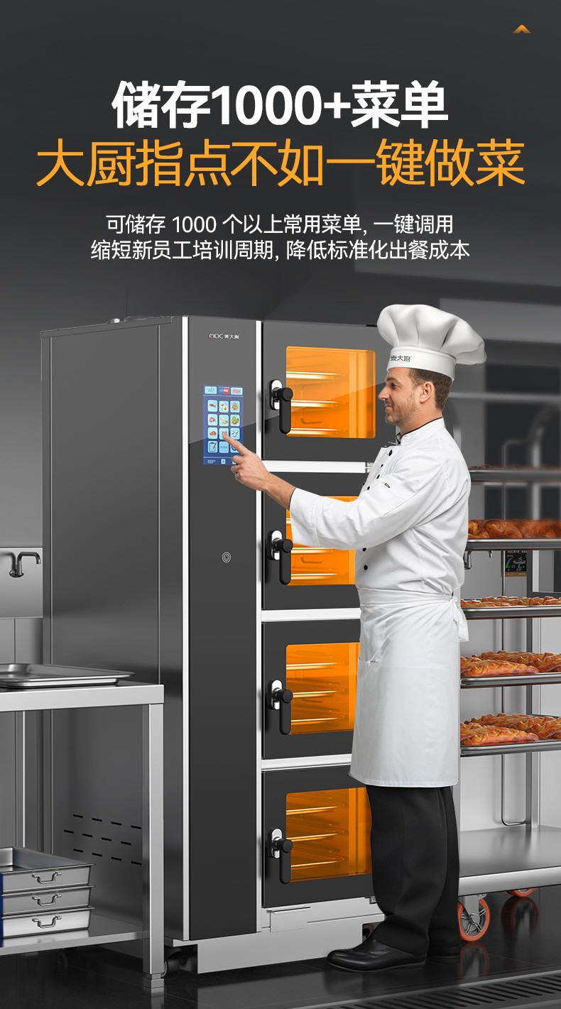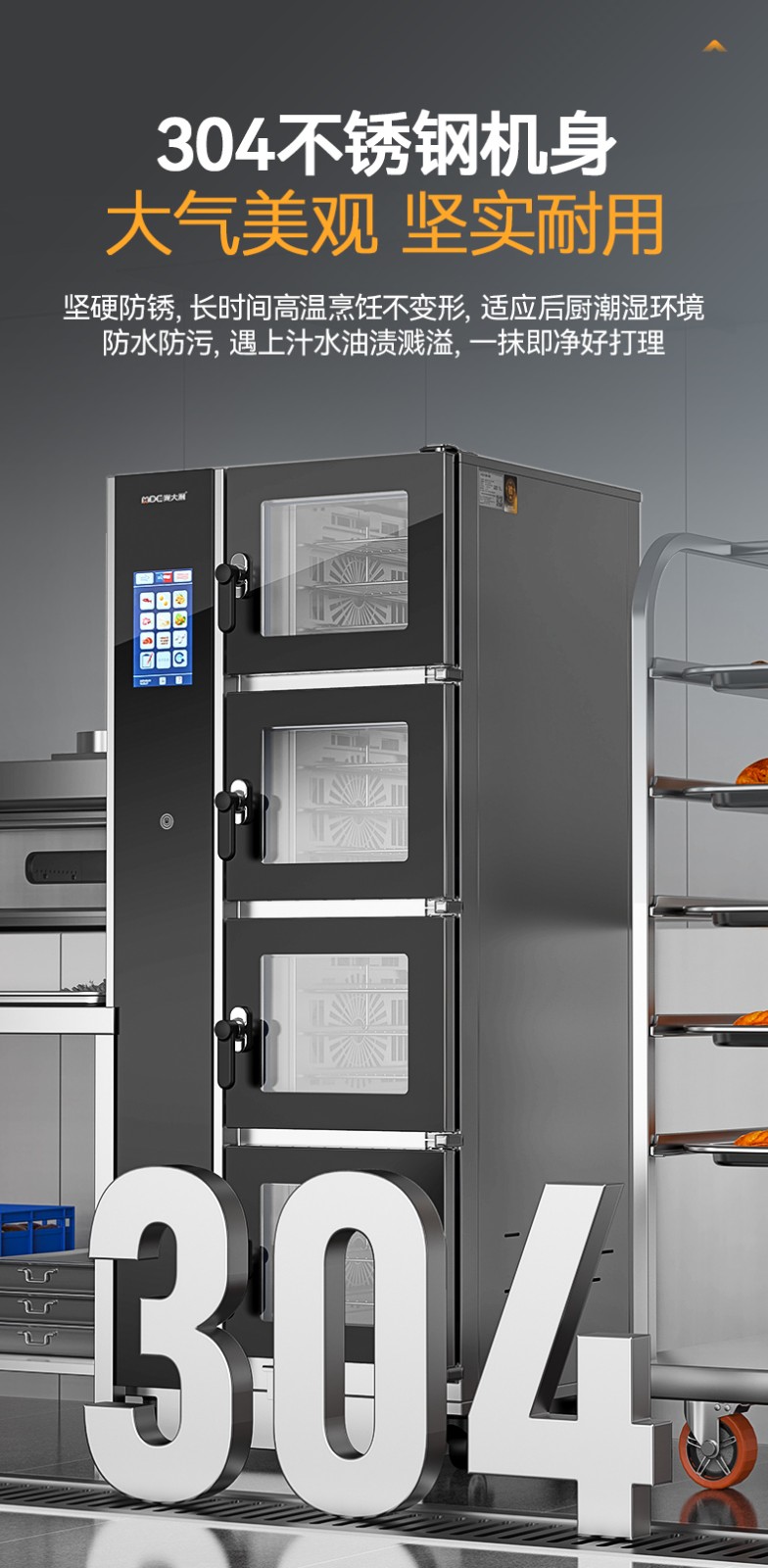 首頁 > 商廚產(chǎn)品 > 蒸烤箱 > 萬能蒸烤箱 >麥大廚ZKA19系列4柜組合觸屏式商用萬能蒸烤箱16.8kW
