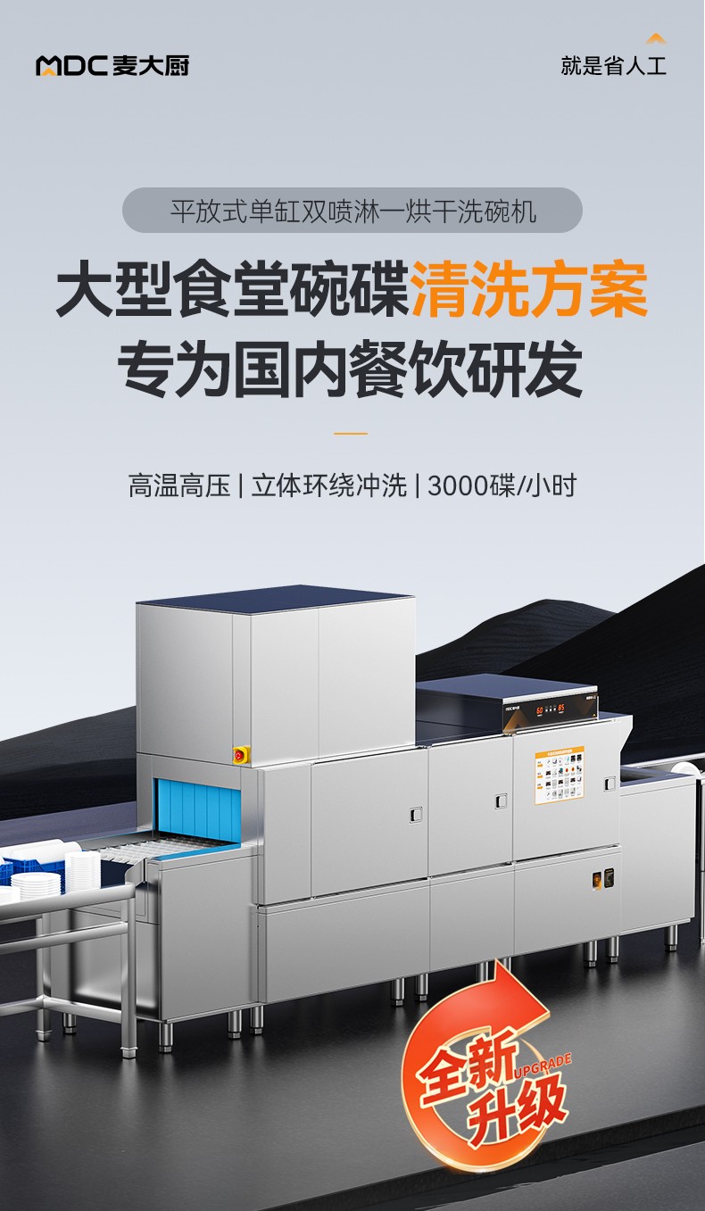 麥大廚旗艦款3.9m平放式單缸雙噴淋單烘干洗碗機