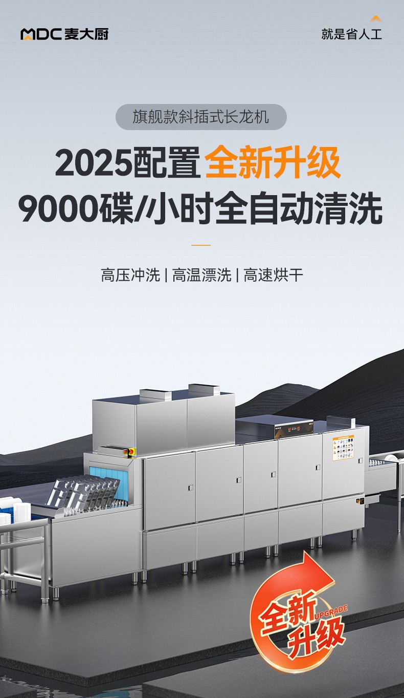 麥大廚旗艦款5.85m斜插式雙缸雙噴淋雙烘干洗碗機(jī)