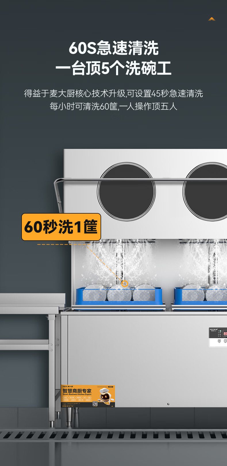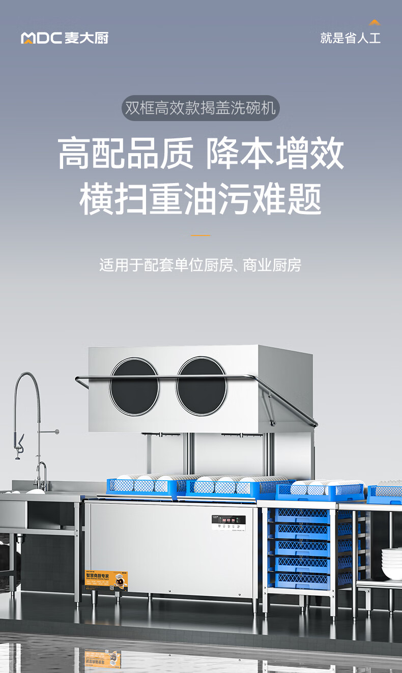 麥大廚商用全自動雙框高效款揭蓋式洗碗機商用20KW