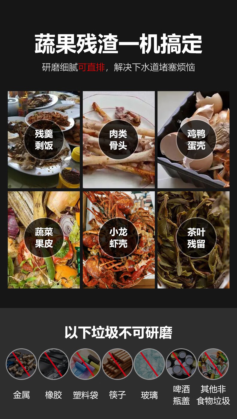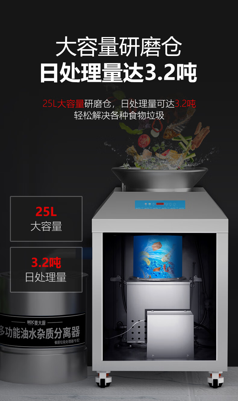 麥大廚垃圾處理器3800GY,商用廚余干濕垃圾潲水粉碎機