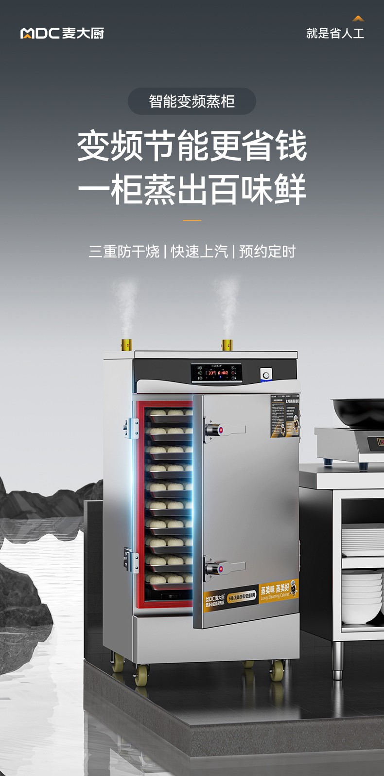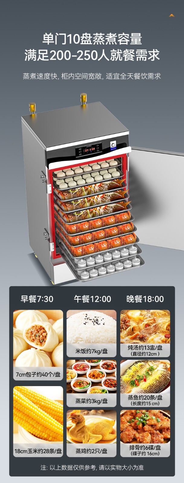 麥大廚商用蒸飯柜10盤變頻款智能電熱蒸箱蒸飯車全自動蒸柜