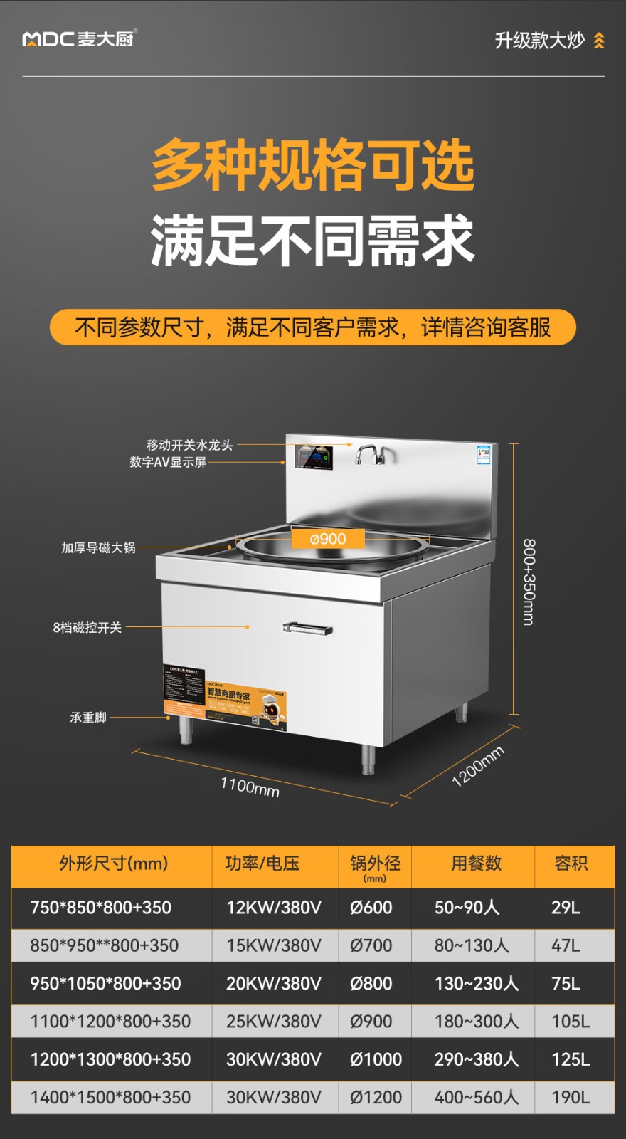 麥大廚飯店百人大炒爐電磁版升級款20KW單頭單位食堂商用大炒爐