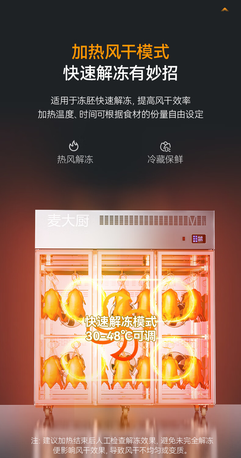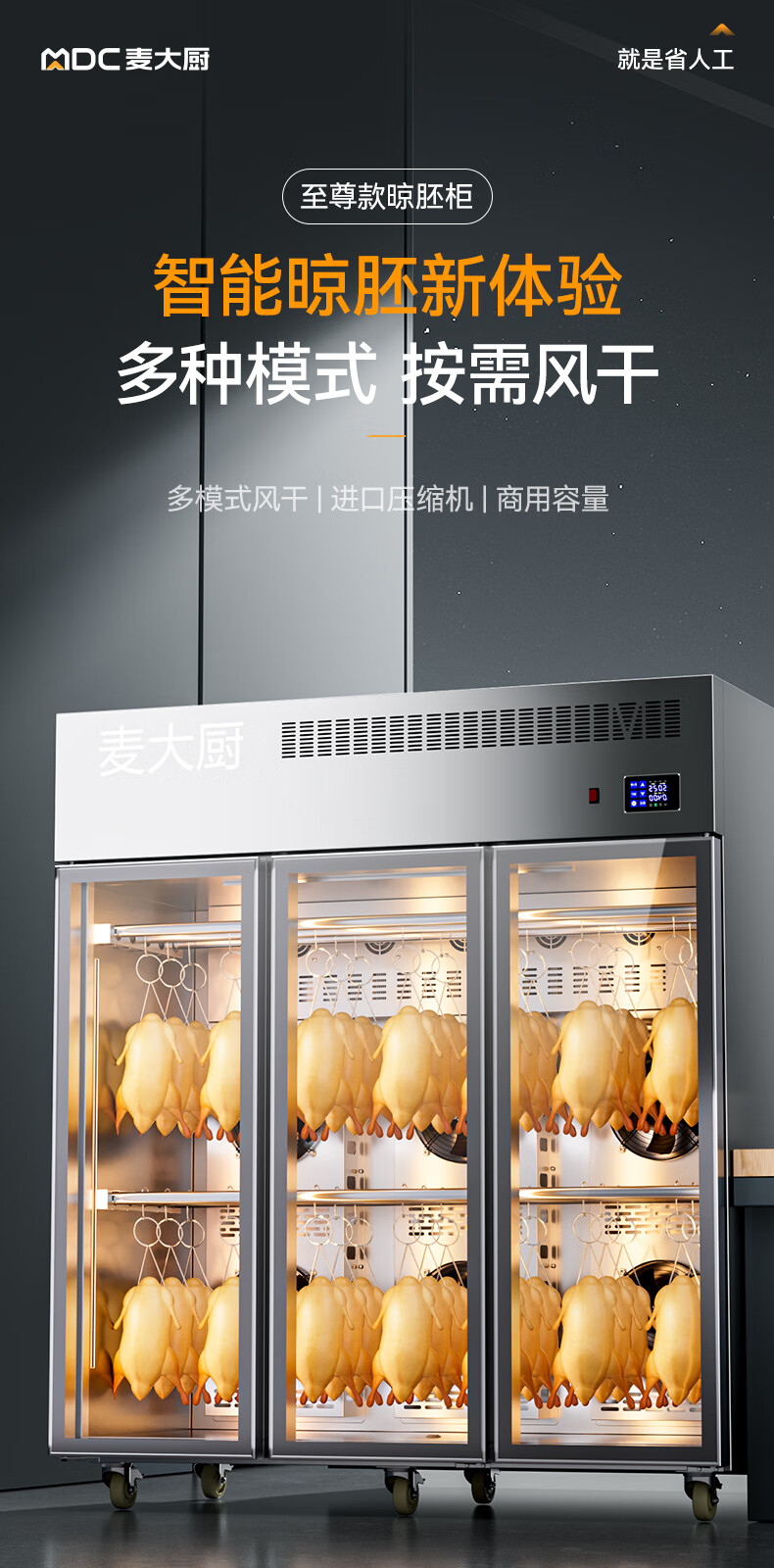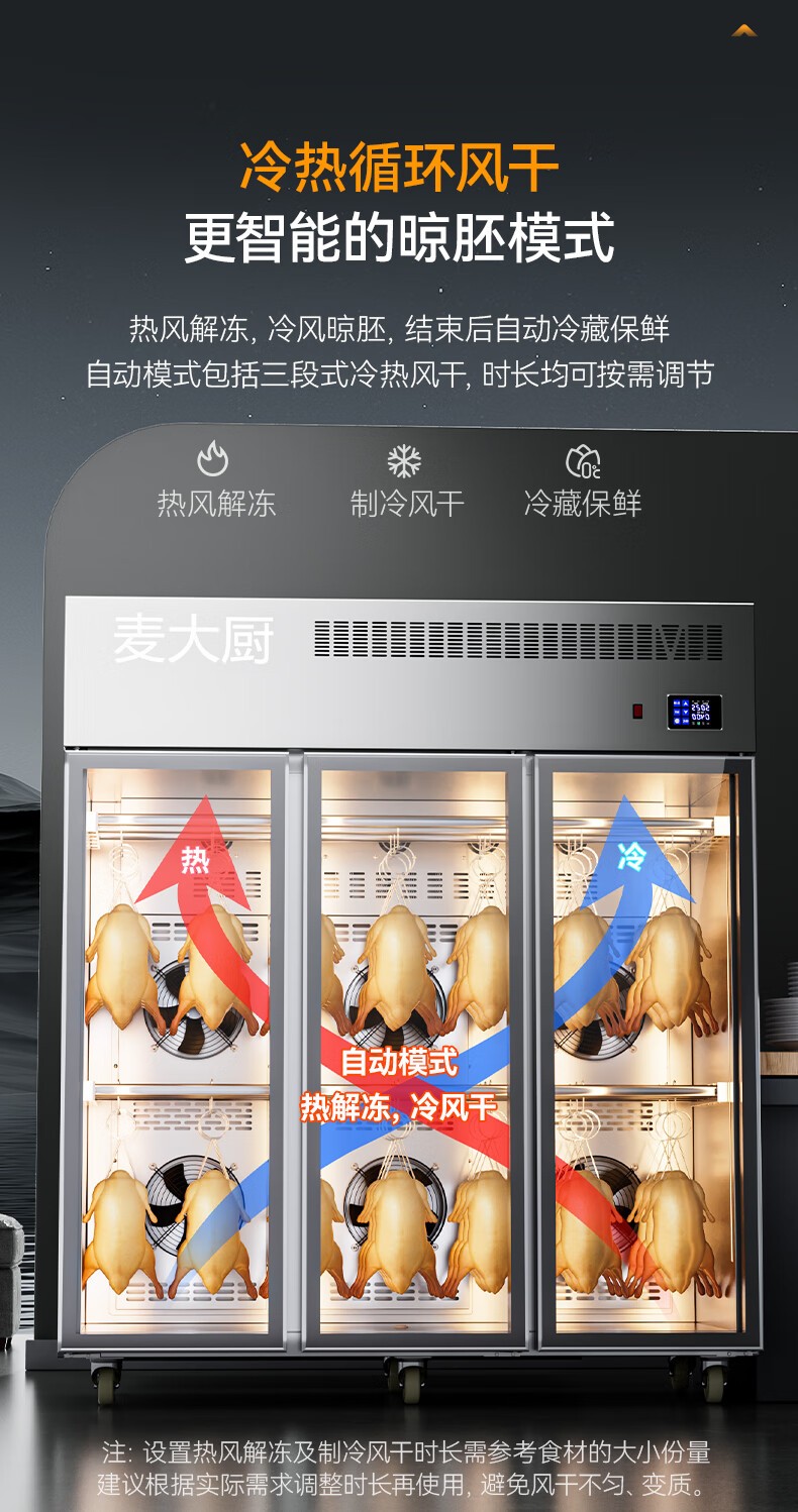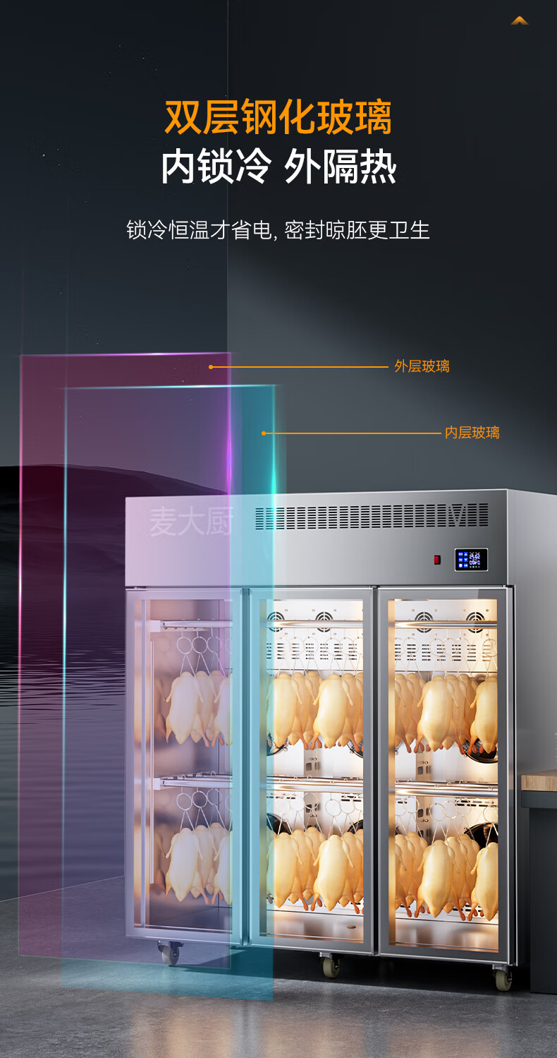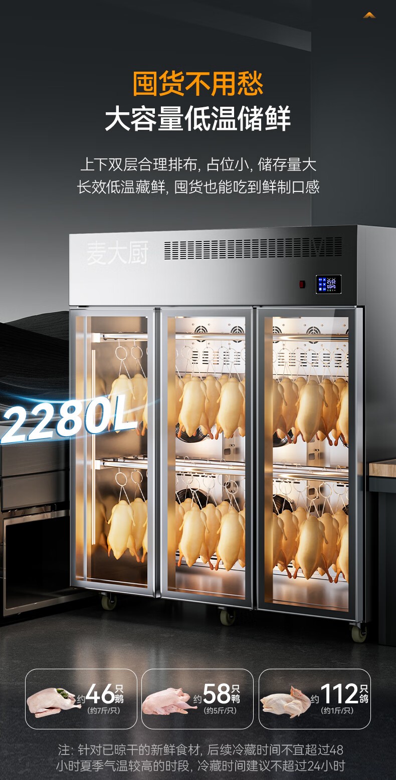 麥大廚商用晾胚柜節(jié)能至尊款2280W三門(mén)烤鴨風(fēng)干柜