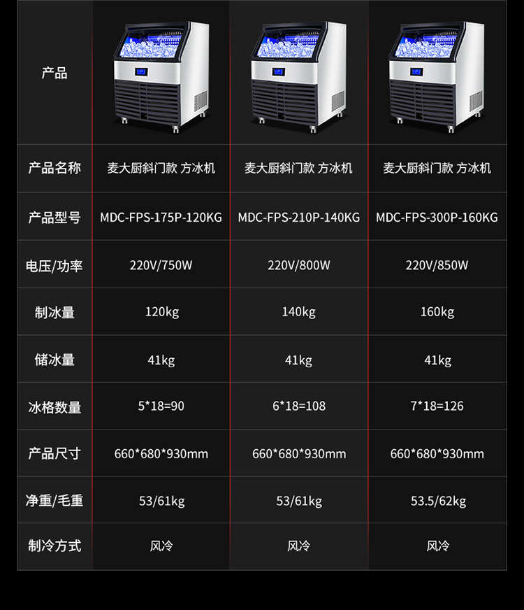 MDC商用制冰機(jī)分體風(fēng)冷款方冰機(jī)182冰格