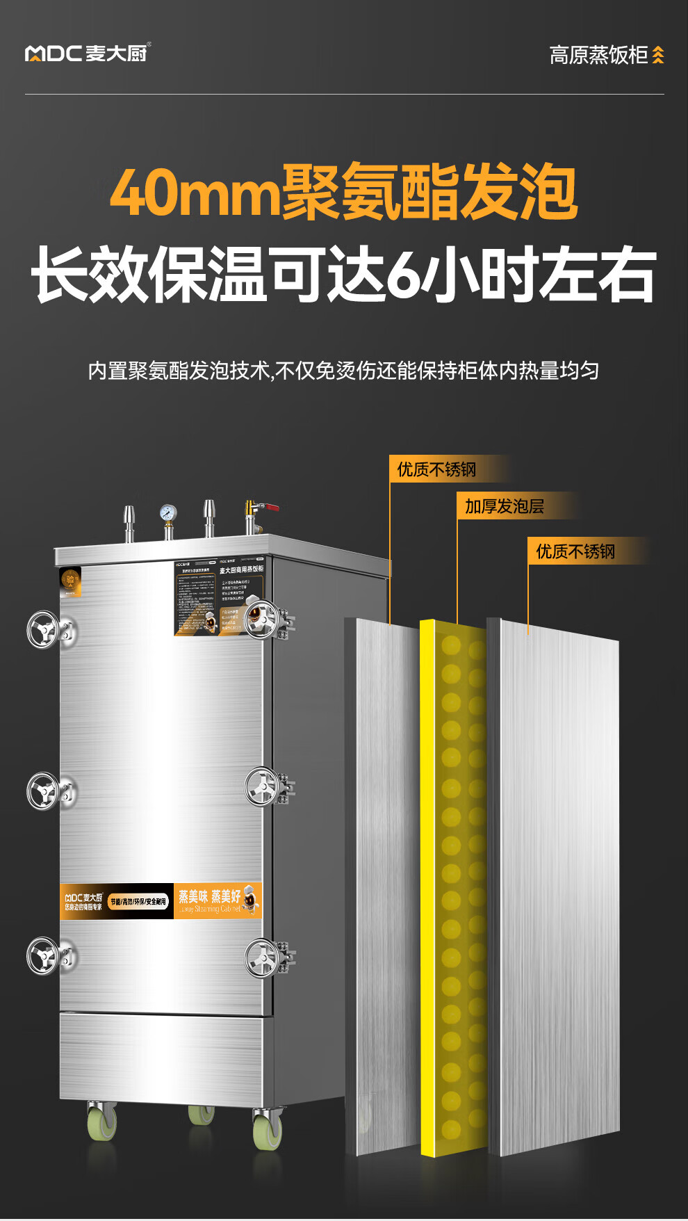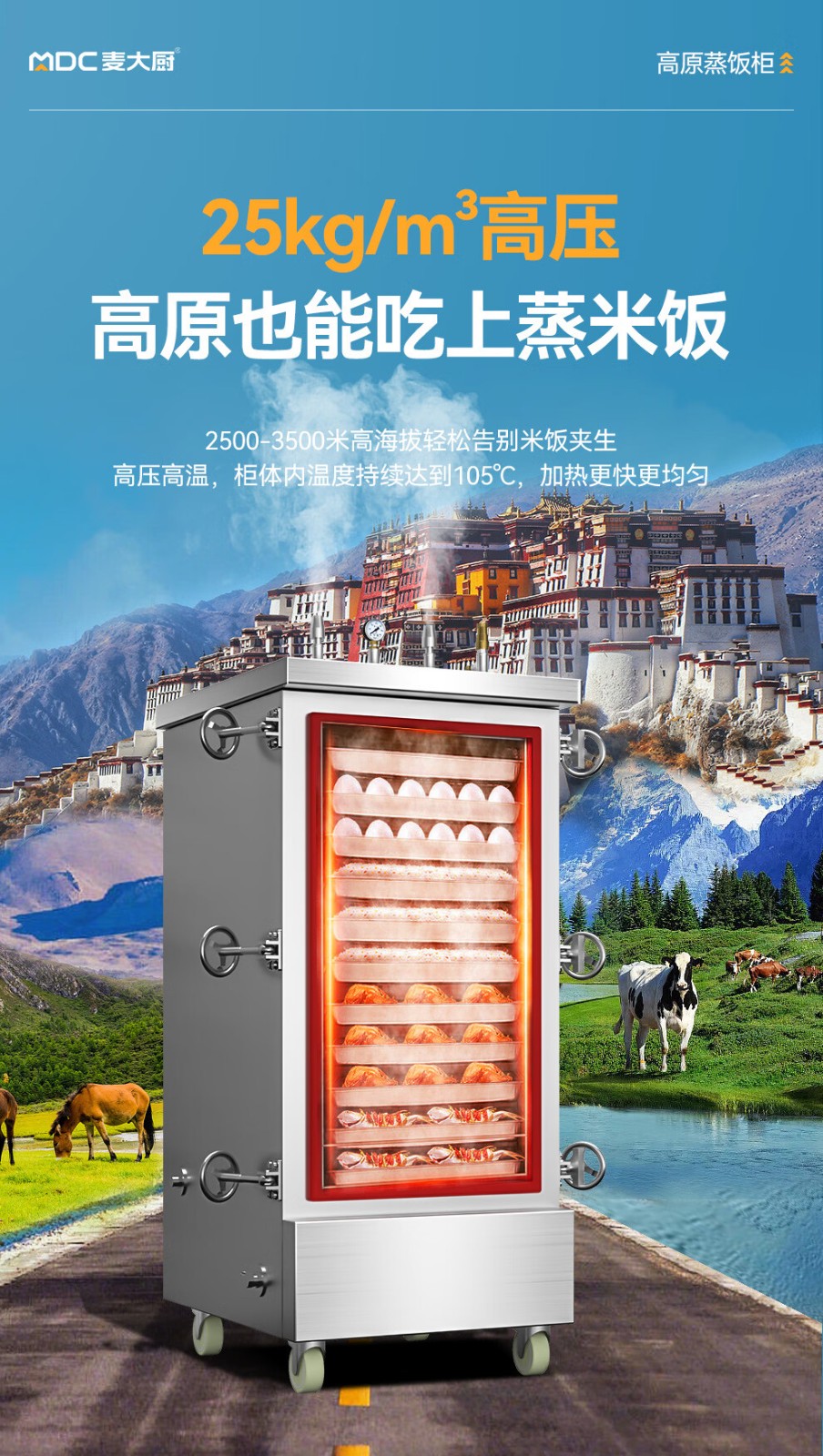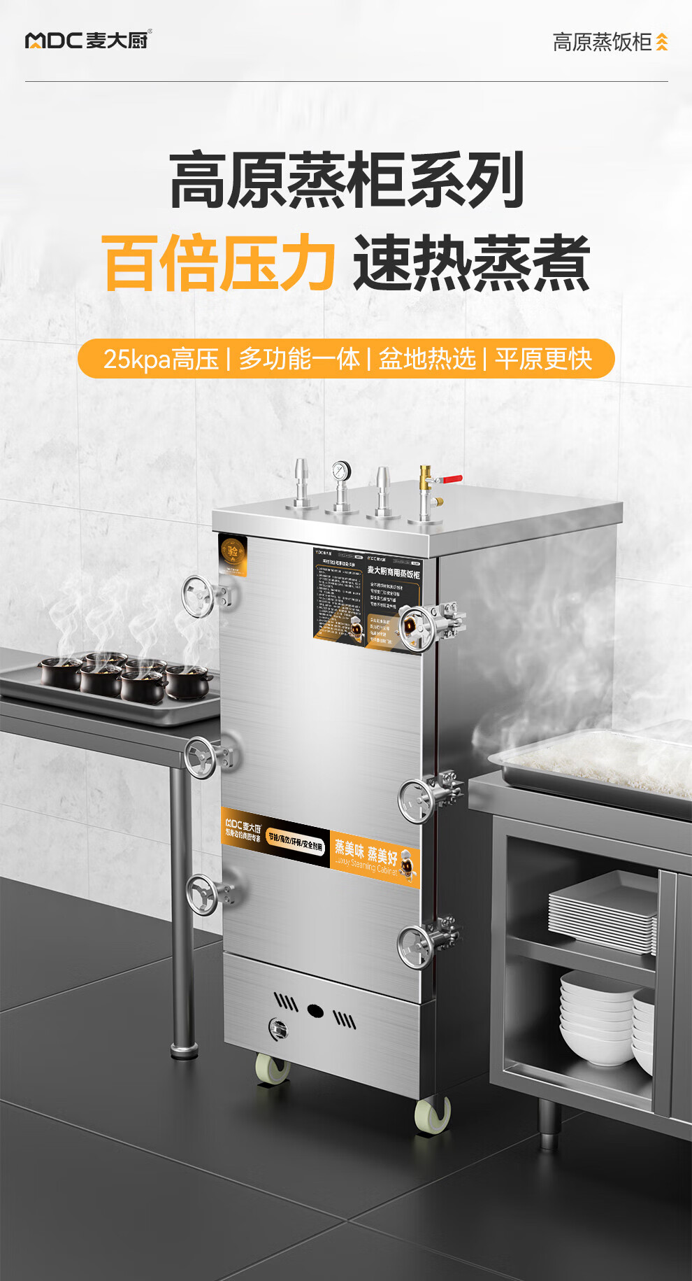 MDC商用高原蒸柜燃氣款6盤單門蒸飯柜