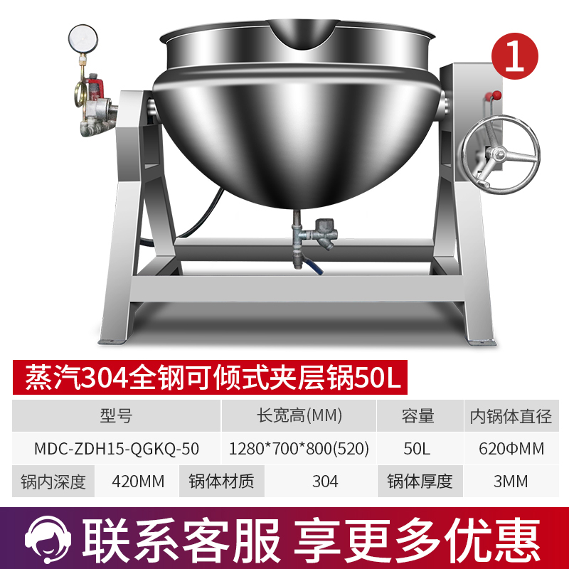 MDC商用夾層鍋蒸汽全鋼可傾式夾層鍋50至600L