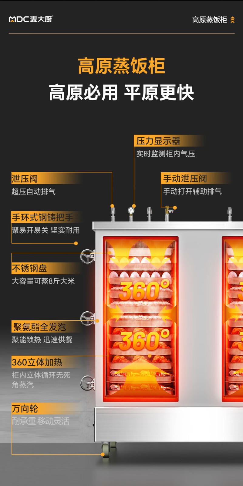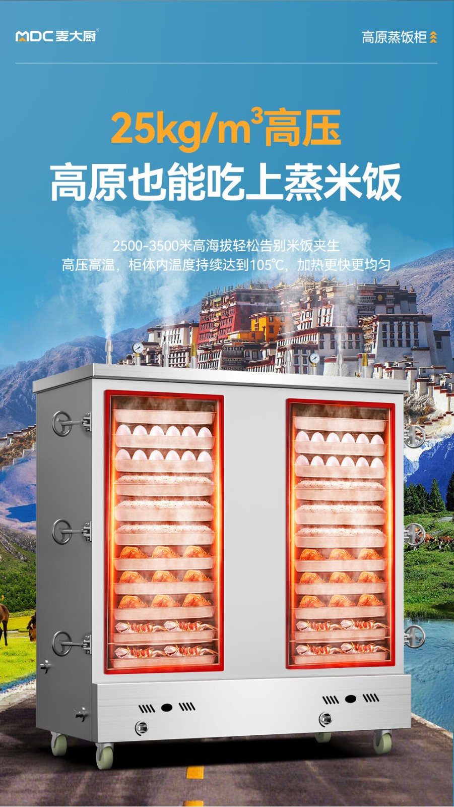 MDC商用高原蒸柜燃?xì)饪?0盤(pán)雙門(mén)蒸飯柜