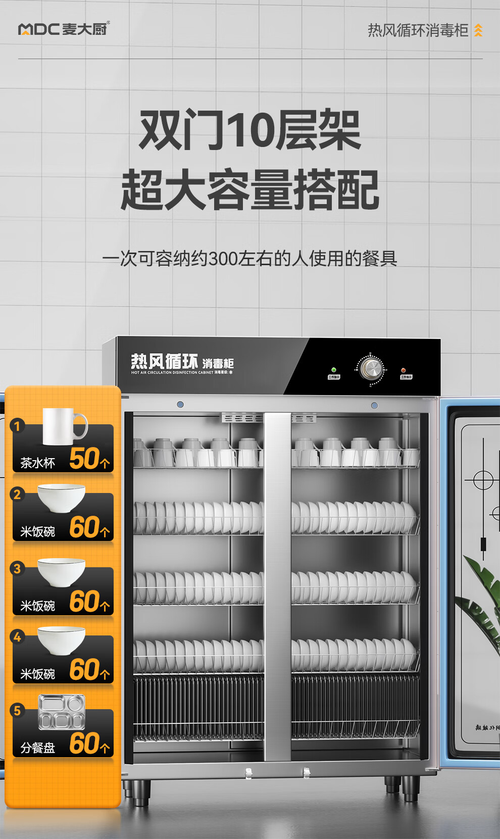 麥大廚智能款220V雙門中溫熱風循環食具消毒柜1550W